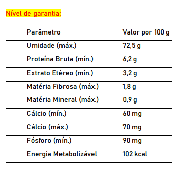 Composição básica: Abóbora, Carne, Caldo de carne e Aveia.