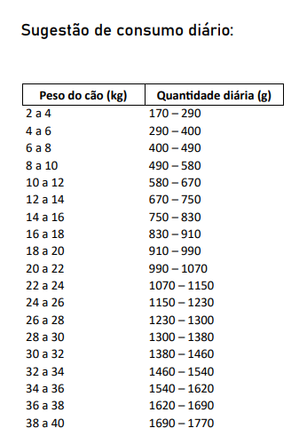 Composição básica: Músculo bovino, Sobrecoxa de frango, Batata doce, Arroz, Chuchu, Abóbora, Fígado de frango, Aveia, Camomila, Erva doce, óleo de canola ,Cúrcuma, suplemento mineral e vitamínico